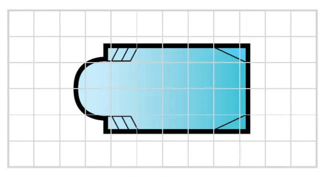 The Lagoona is a modern geometric style pool with a roman twist. Featuring dual entry steps into the shallow end and two resting ledges in the deeper end, this fiberglass pool is a sophisticated addition to any outdoor space.